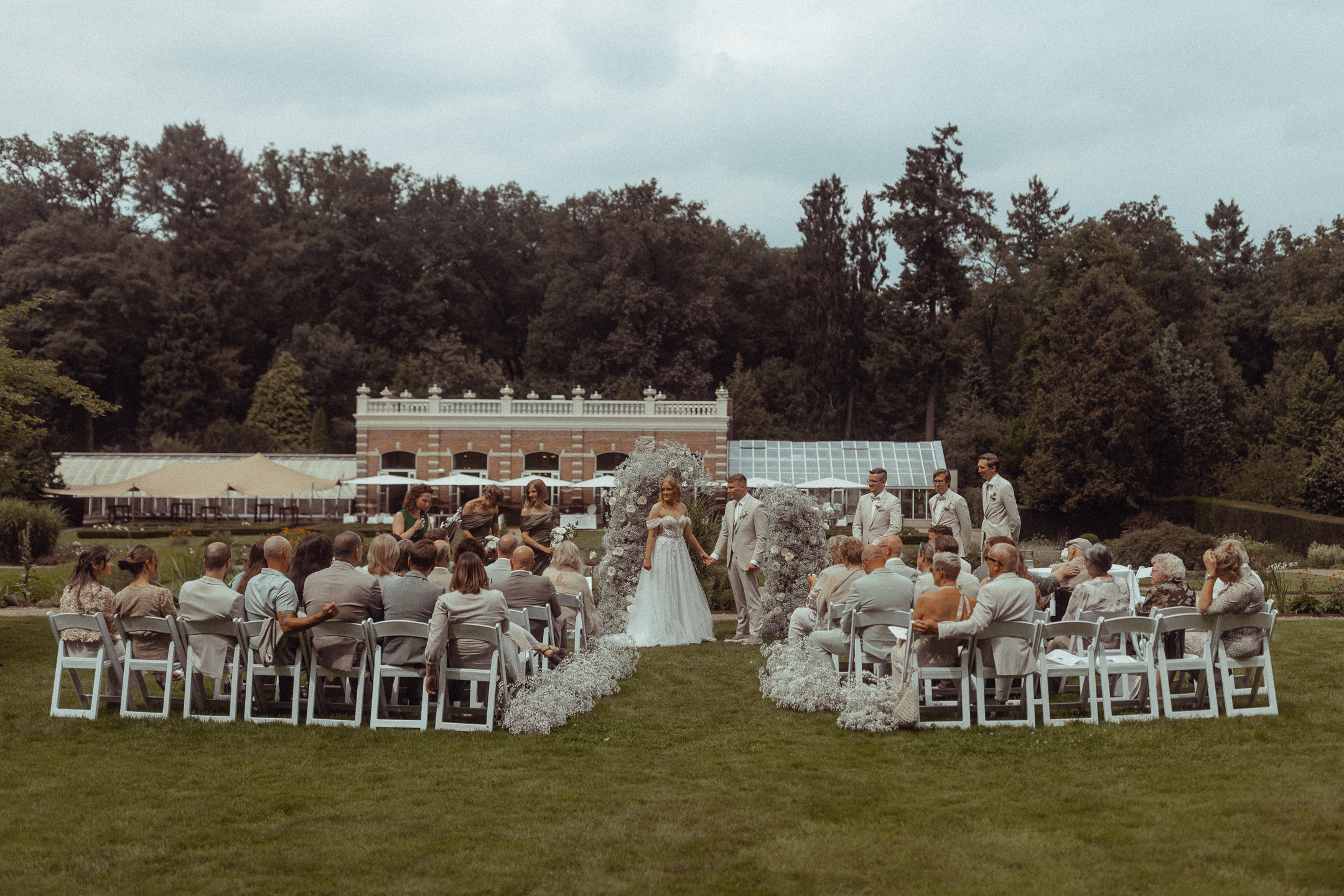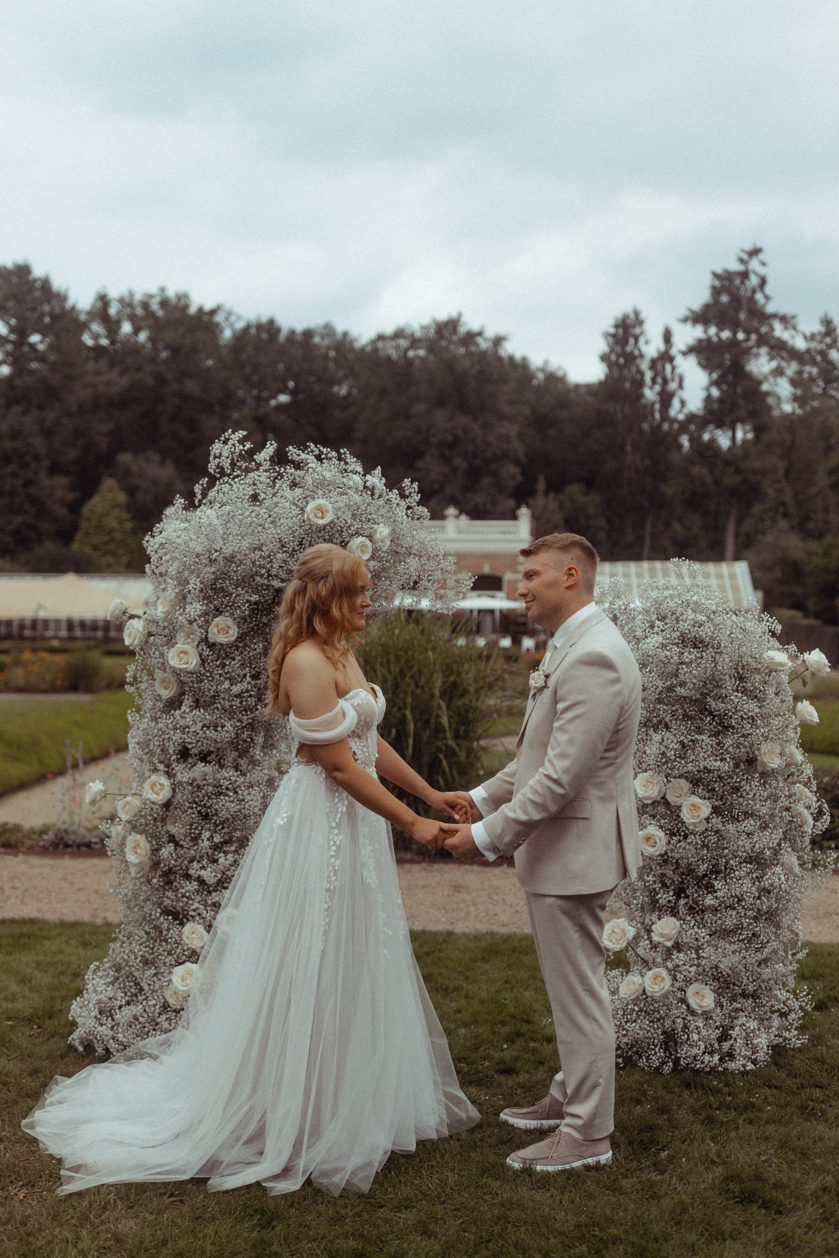 Gaven elkaar in de zomer het JA-woord bij landgoed Groot Warnsborn, in Arnhem. Ze kozen voor een dromerige en classic witte bloemenzee , samengesteld uit bijna volledig helemaal gipskruid met daarbij prachtige grote rozen.