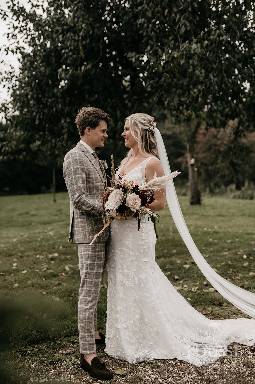 Dit leuke stel was helemaal weg van de pampas pluimen en prachtige warme terracotta en bruin tinten. Omdat hun dag zich afspeelde op verschillende locaties, hadden we ervoor gekozen om de bloemstukken in terracotta potten te maken, zodat deze snel en gemakkelijk te verplaatsen waren, op en naar verschillende locaties.