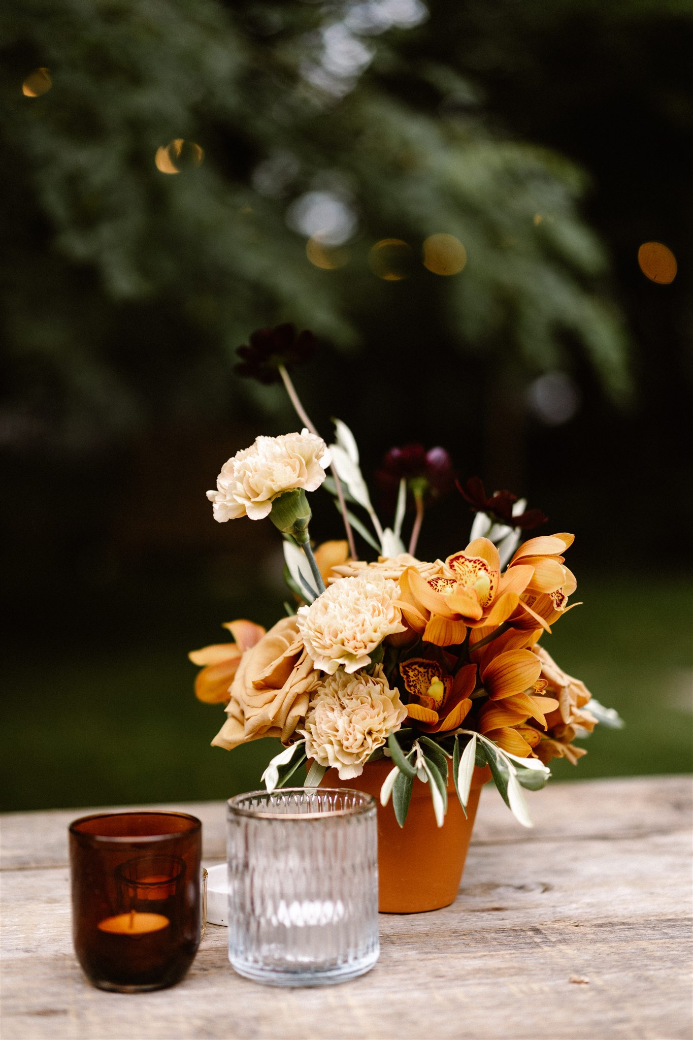 Ben jij ook helemaal fan van de warme herfsttinten? neem dan zeker even een kijkje tussen deze bruiloft en laat je inspireren. Voor Orline & Roderick hebben we gebruik gemaakt van spreekende warme herfsttinten met daarbij veel verschillende tinten, zodat de bloemen elkaar in kleur versterken en het geheel verbluffend is om naar te kijken. We hebben in de bloemstukken gebruik gemaakt van verschillende pampas pluimen met daarbij veel verschillende verse bloemen. De locatie hebben we verder aangekleed met verschillende terracotta potten met bloemen, gedroogde lavendel en rozemarijn planten, om hierin wat mediterrane accenten terug te laten komen.